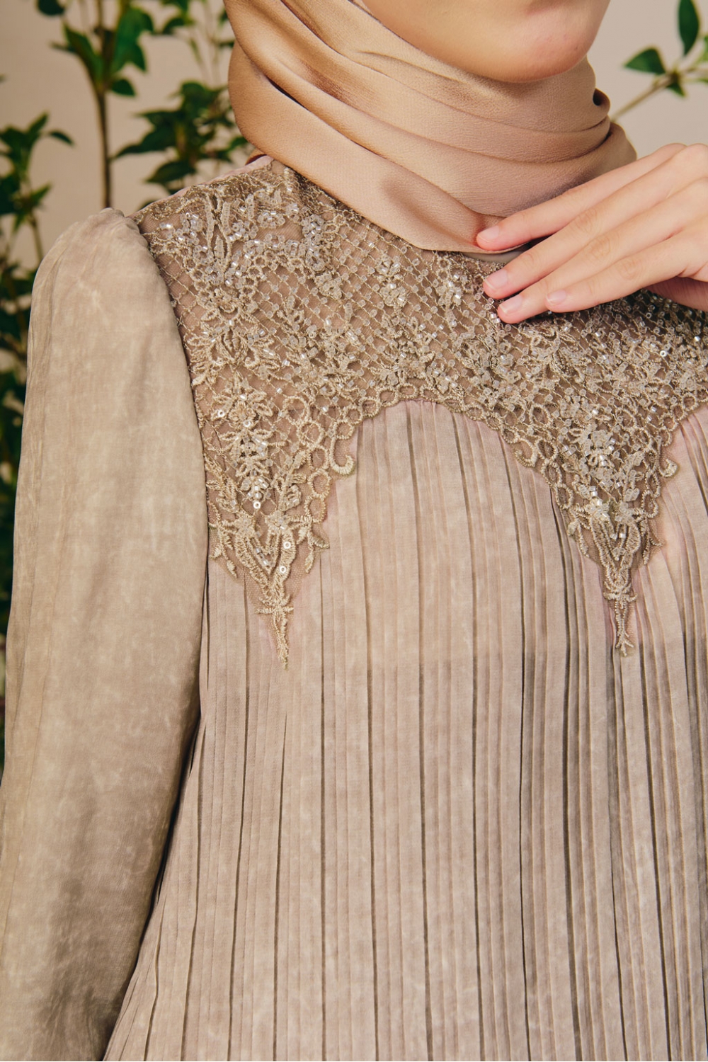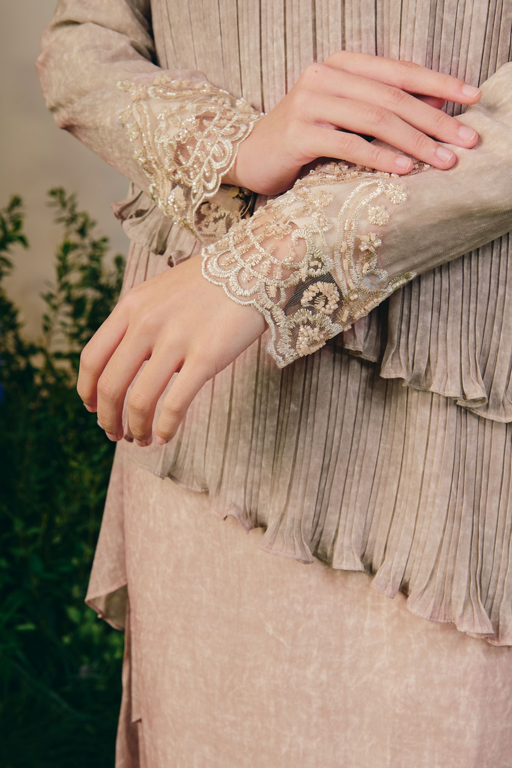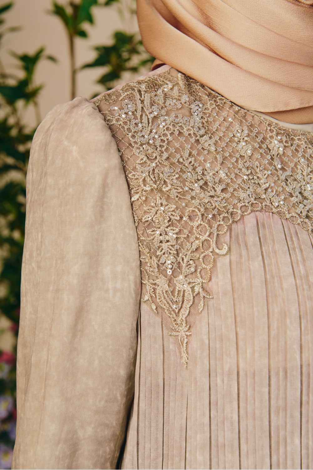 • slim sleeves with hidden zip ( lace with beading detailings)