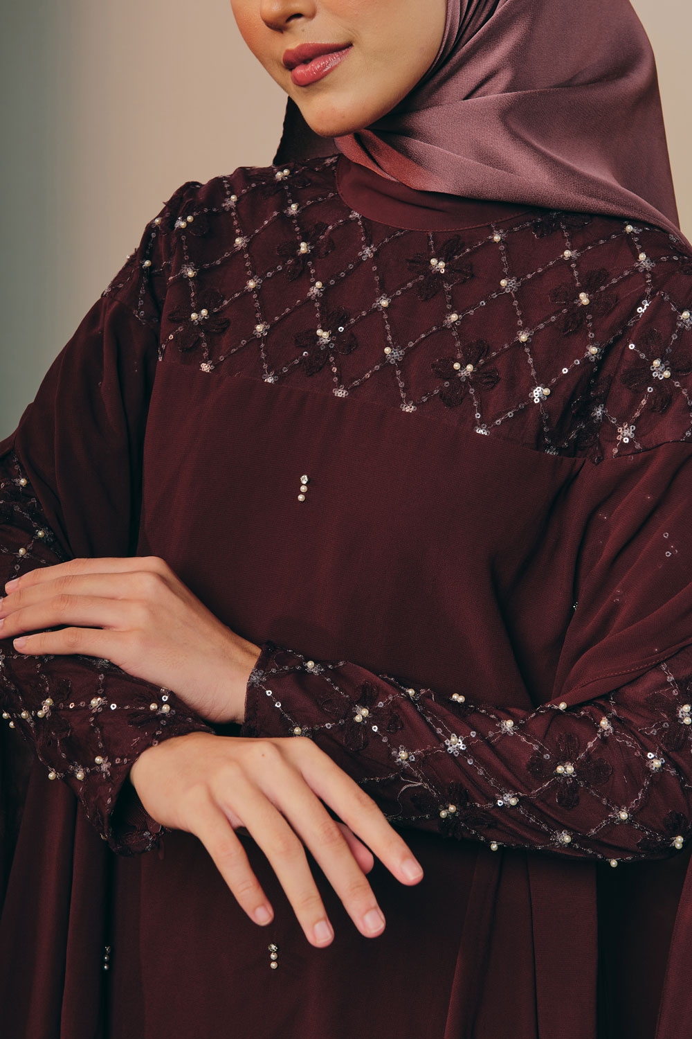 - attached outer layer of kaftan with beaded laced shoulder