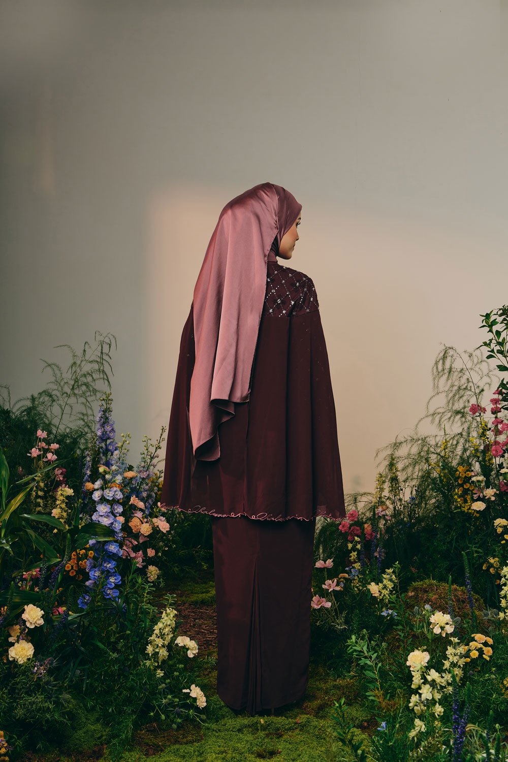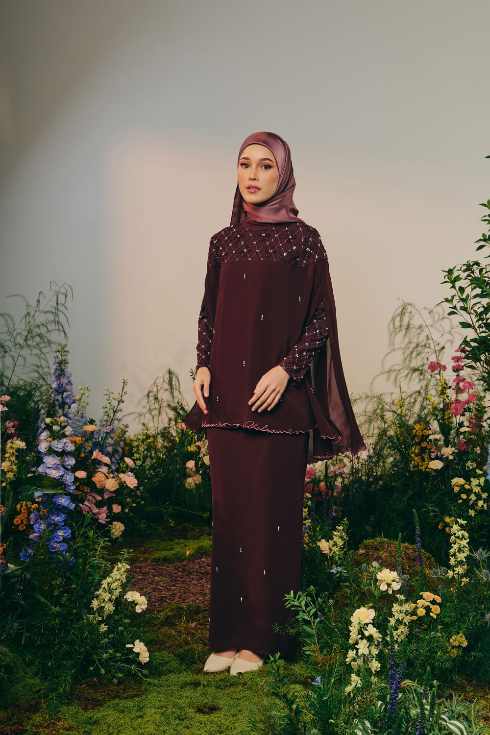- kurung modern top (inner) with full laced and beaded slim cutting sleeves (zip )