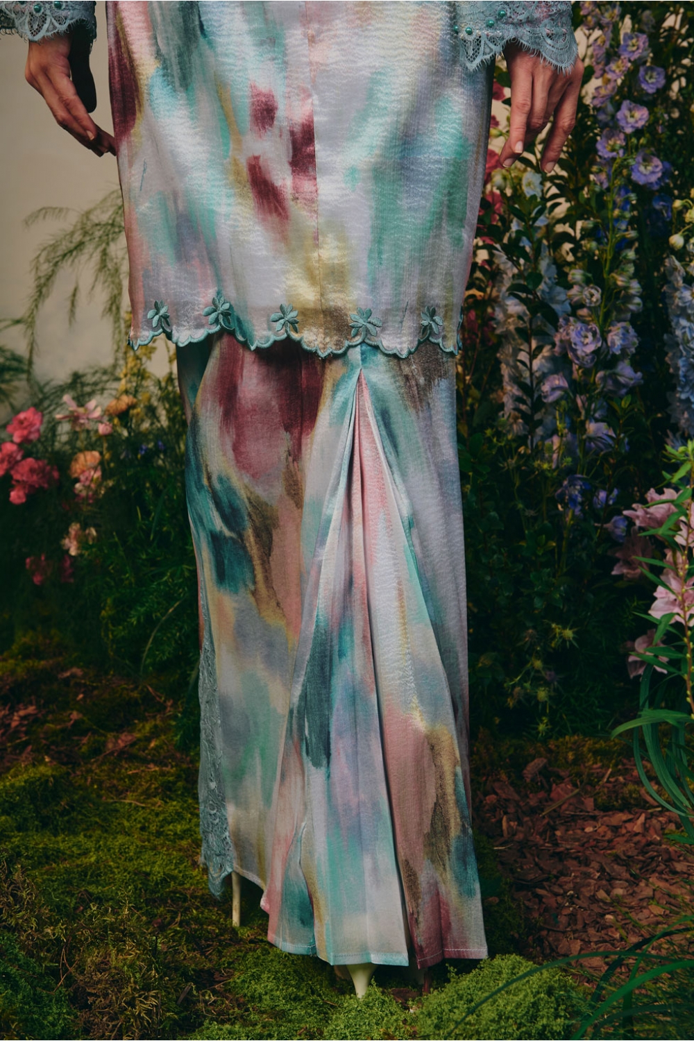 long kurung cutting for tops. straight cuts for skirt