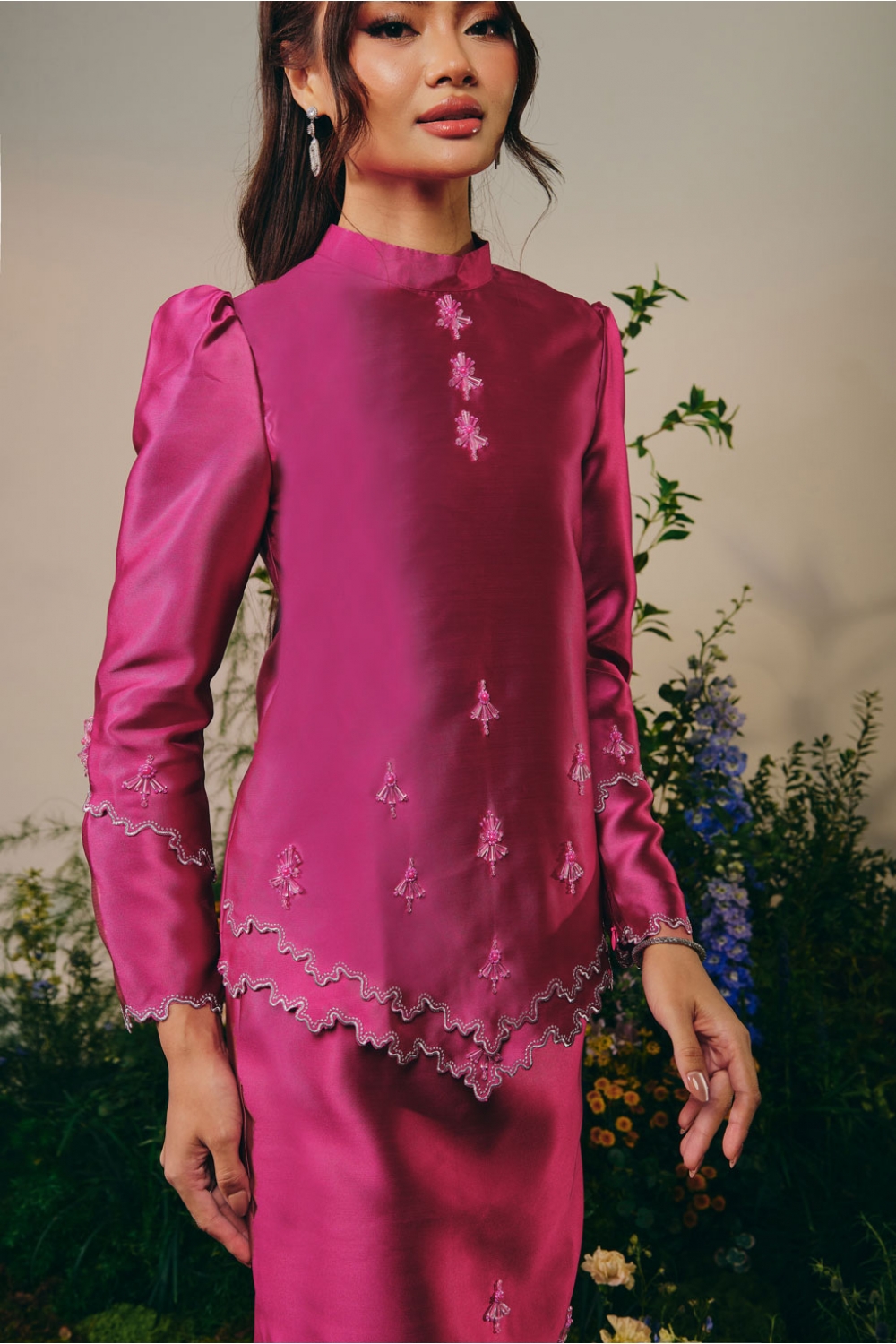• front hem handcarft  beading detailings and double layer sulam