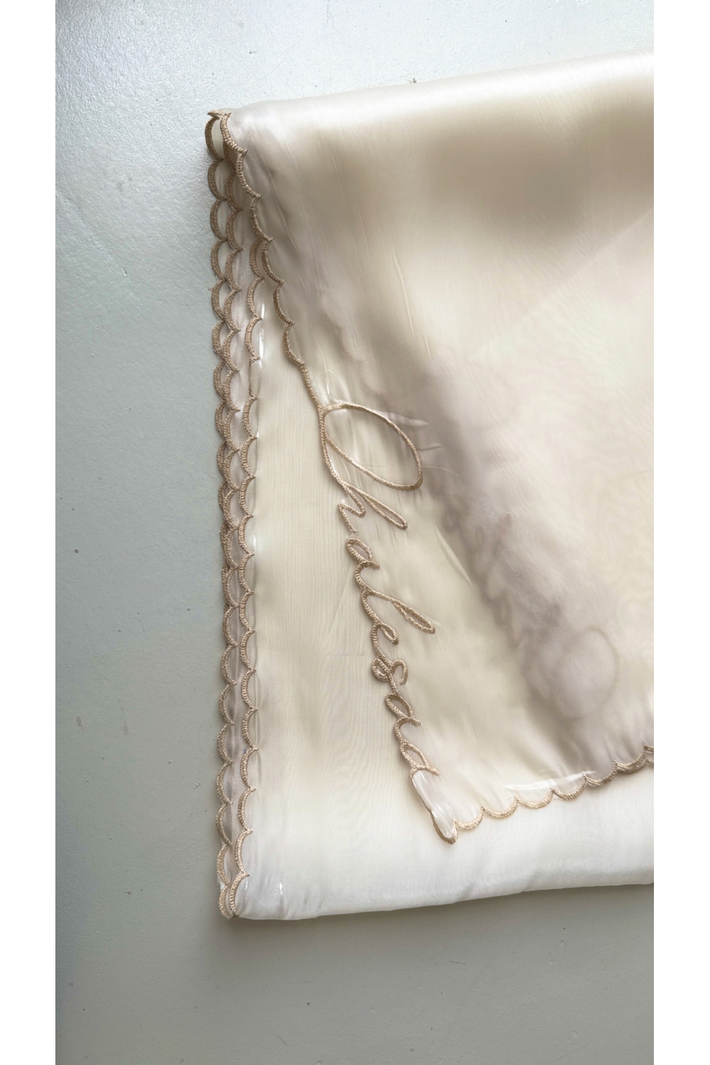 ORGANZA FABRIC WITH 4 SIDES STATEMENT LOGO QHALESAA EMBROIDERY WITH SCALLOPS
