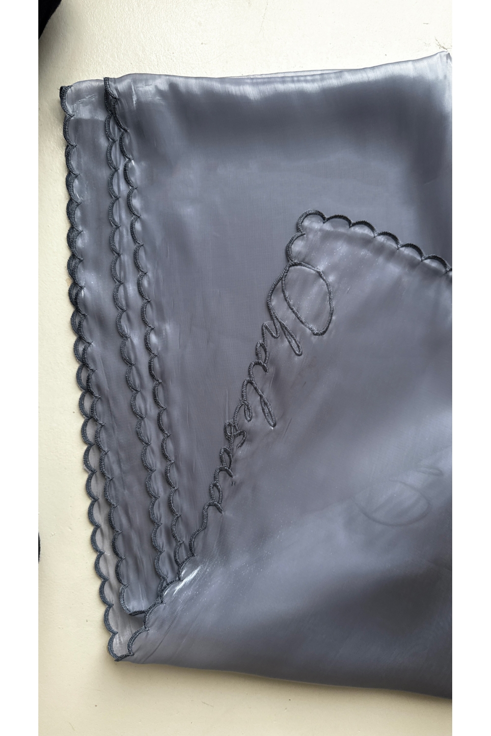 ORGANZA FABRIC WITH 4 SIDES STATEMENT LOGO QHALESAA EMBROIDERY WITH SCALLOPS