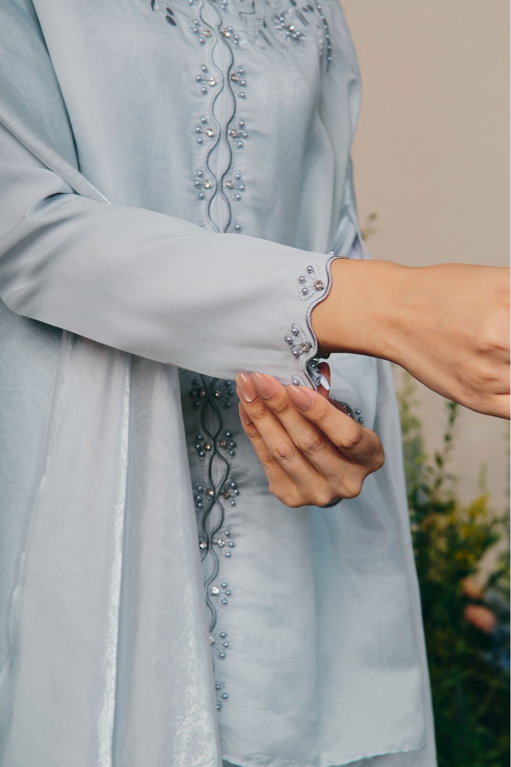 • attached outer layer of kaftan with front beaded and sulam